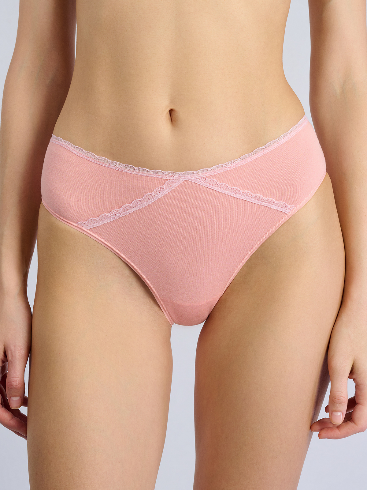 ✔ Дизайн: Чистый, однотонный нежно-розовый цвет — универсальный и приятный для глаз. На передней части — изящная V-образная вставка из полупрозрачной сетки с белым кружевом по краю, создающая эффект легкой игривости и элегантности.