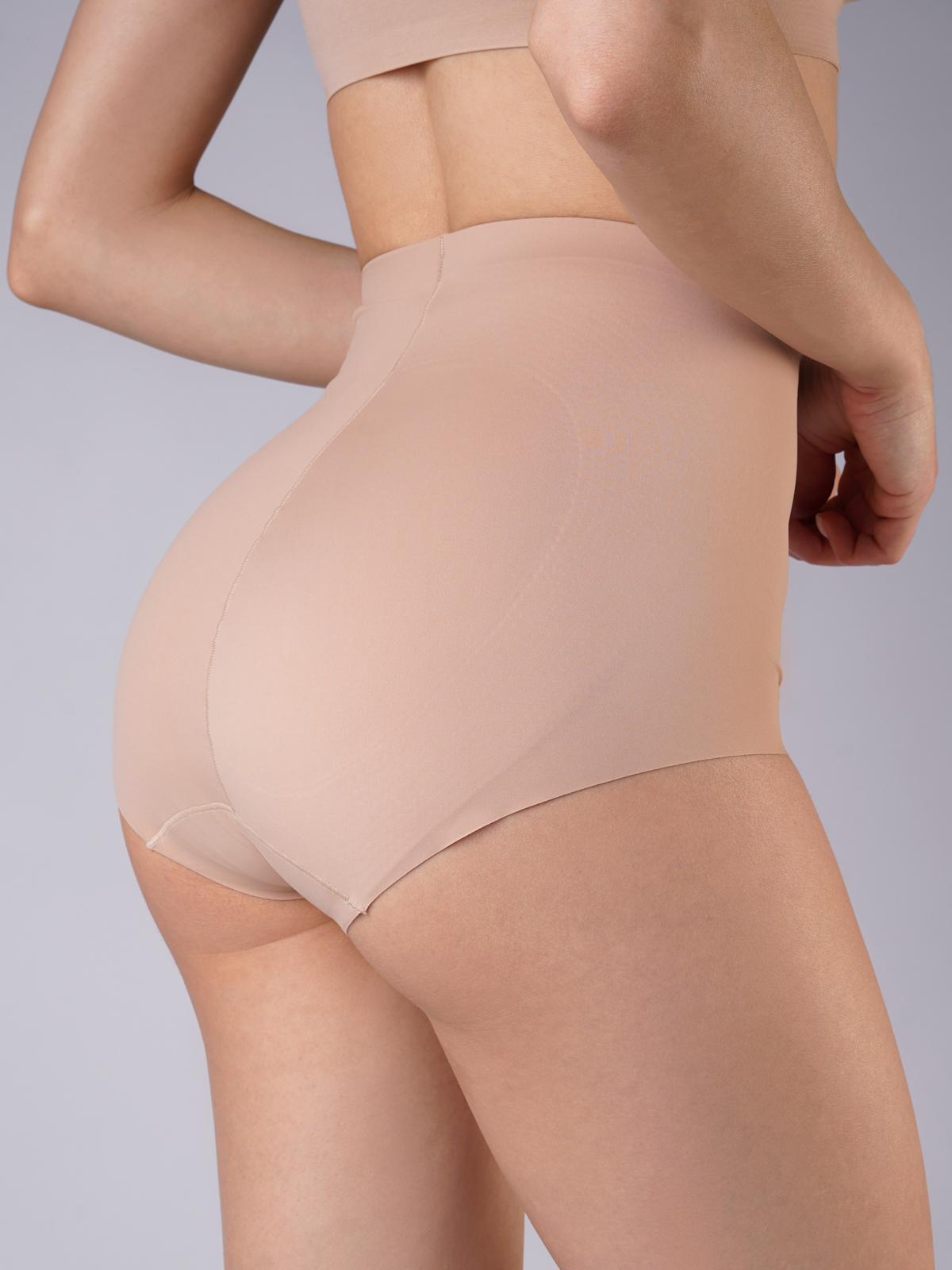 Бесшовное корректирующее белье в базовом бежевом оттенке. Модель хорошо утягивает и не сковывает движение. Особенности — не сползает, подчеркивает линию талии; — белье не видно под одеждой; — сочетается с чем угодно.