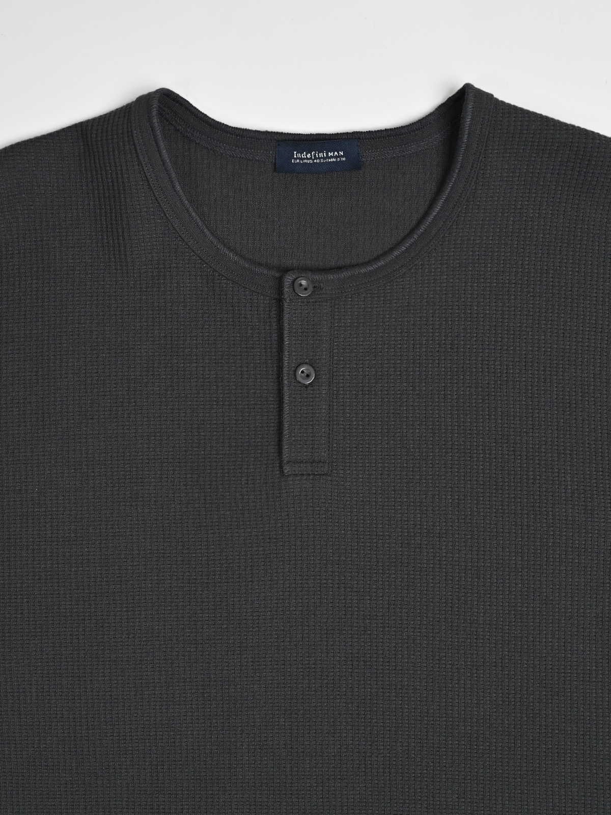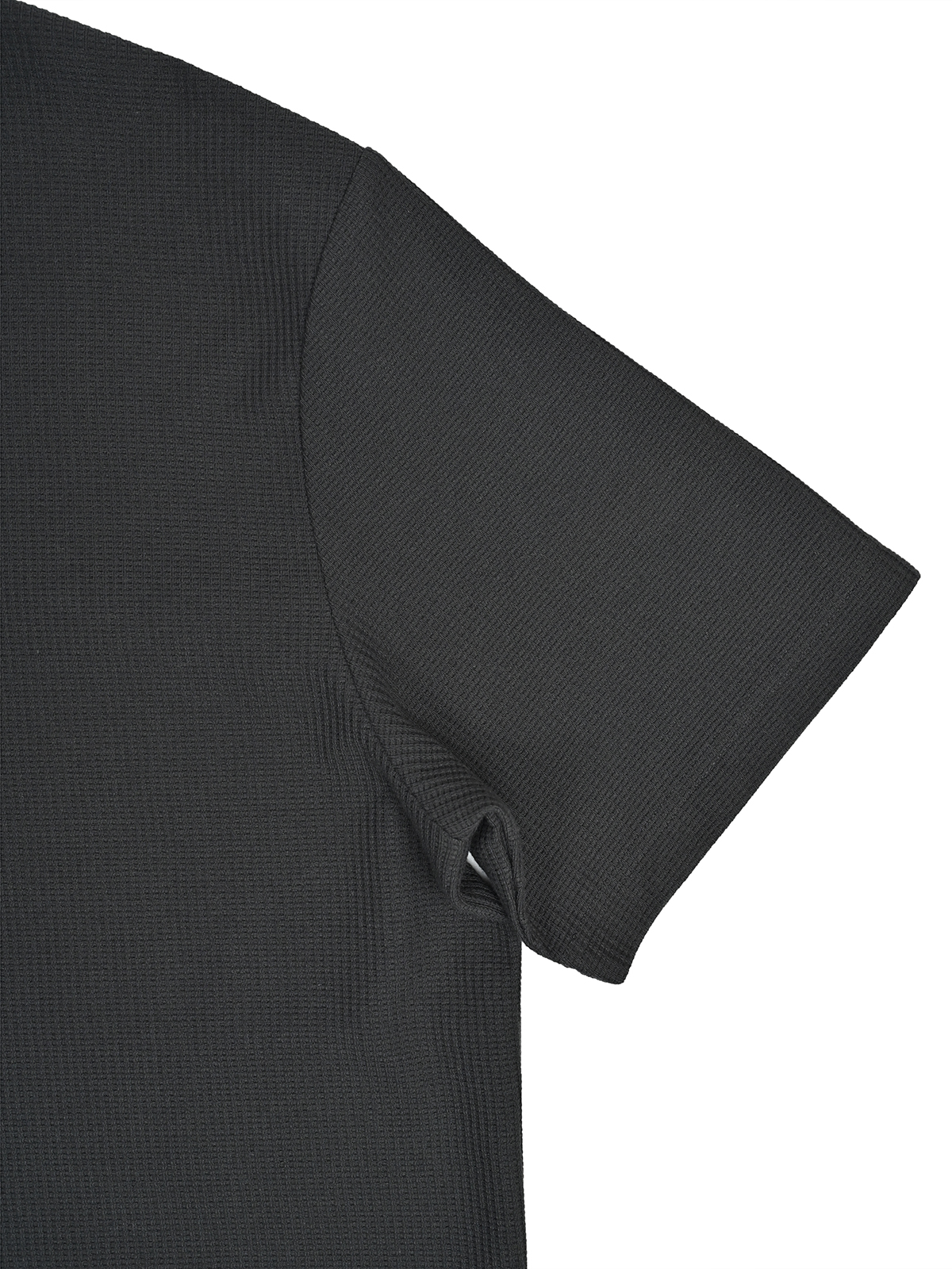 Футболка из вафельной ткани прочная, долговечная, с хорошей гигроскопичностью и воздухопроницаемостью. У горловины короткая застежка-поло — придет элегантность повседневной домашней одежде.