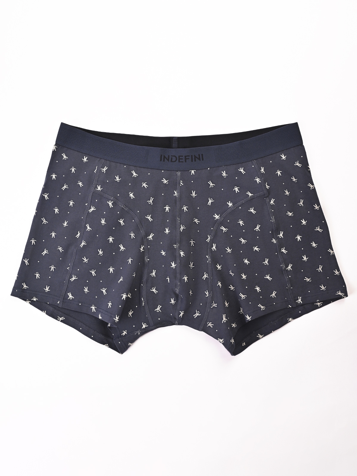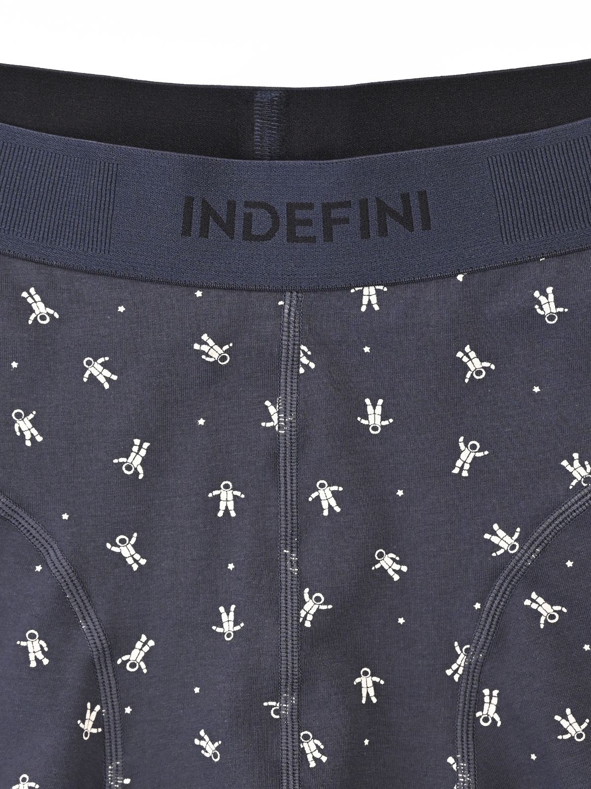 Мужские трусы-боксеры - отличный выбор в качестве повседневного нижнего белья. Трусы отлично сидят на фигуре и не натирают. Удобная резинка с логотипом INDEFINI мягко облегает талию. Оригинальный дизайн выполнен в виде рисунка космонавтов на синем фоне. В составе изделия хлопок с добавлением эластана, благодаря чему трусы прослужат долго, создавая чувство комфорта в течение всего дня.