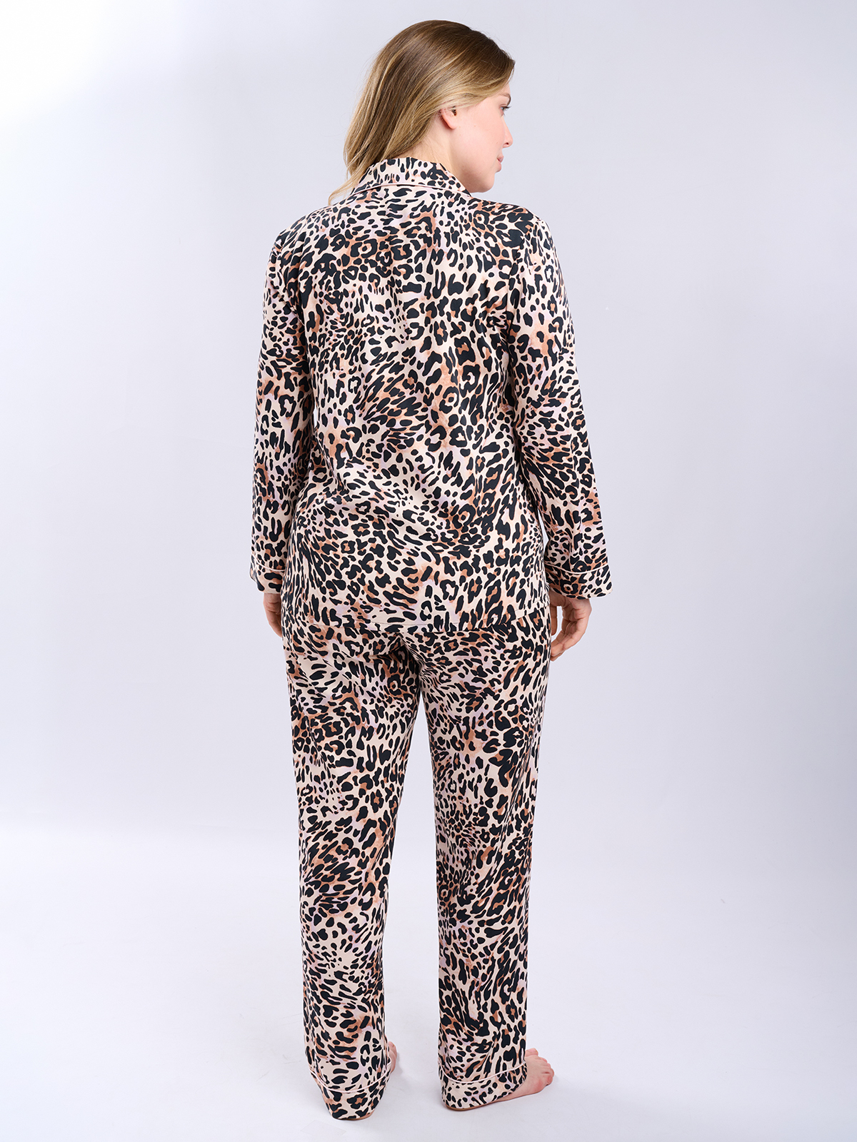 Легкая и стильная пижама Indefini — это идеальный спутник для уютного отдыха, расслабленных вечеров и сладкого сна. Сочетание мягкой дышащей ткани и смелого леопардового принта создает настроение уверенности, женственности и непринужденной элегантности — даже дома.