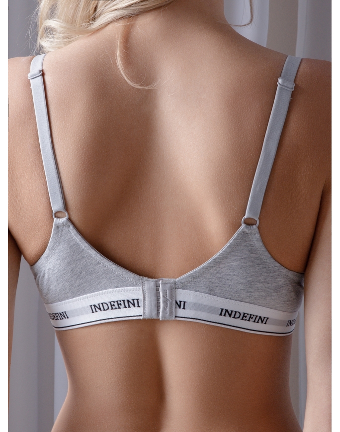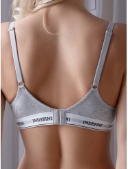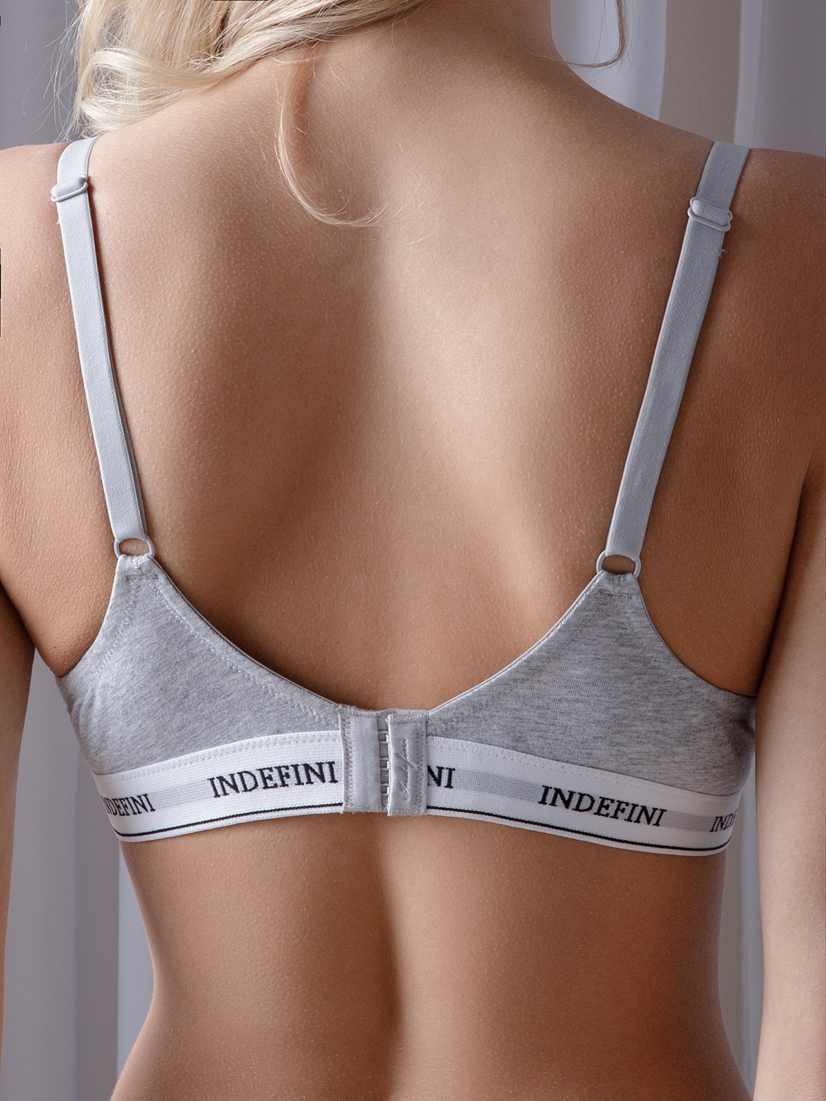 Женский бюстгальтер из хлопковой ткани приятно ощущается на коже, хорошо пропуская воздух. Поролоновые чашки на косточках без Push-Up обеспечивают отличную поддержку груди. Благодаря тонким бретелям изделие можно регулировать под индивидуальные предпочтения. Желаемая степень обхвата груди достигается с помощью крючков на задней части бюстгальтера. Широкая эластичная резинка позволяет данной модели надёжно держаться при ношении.
