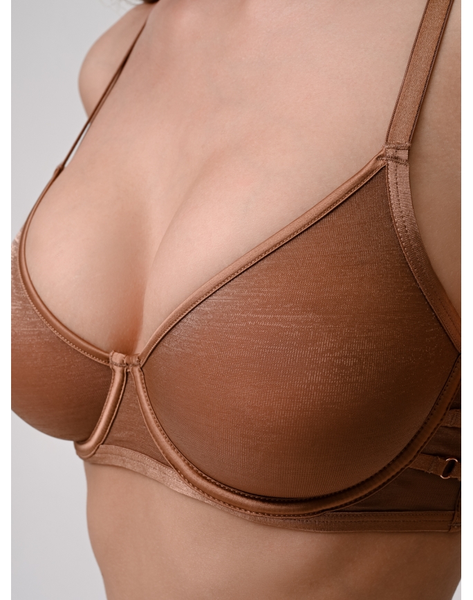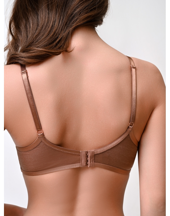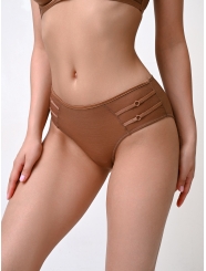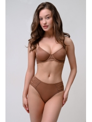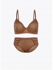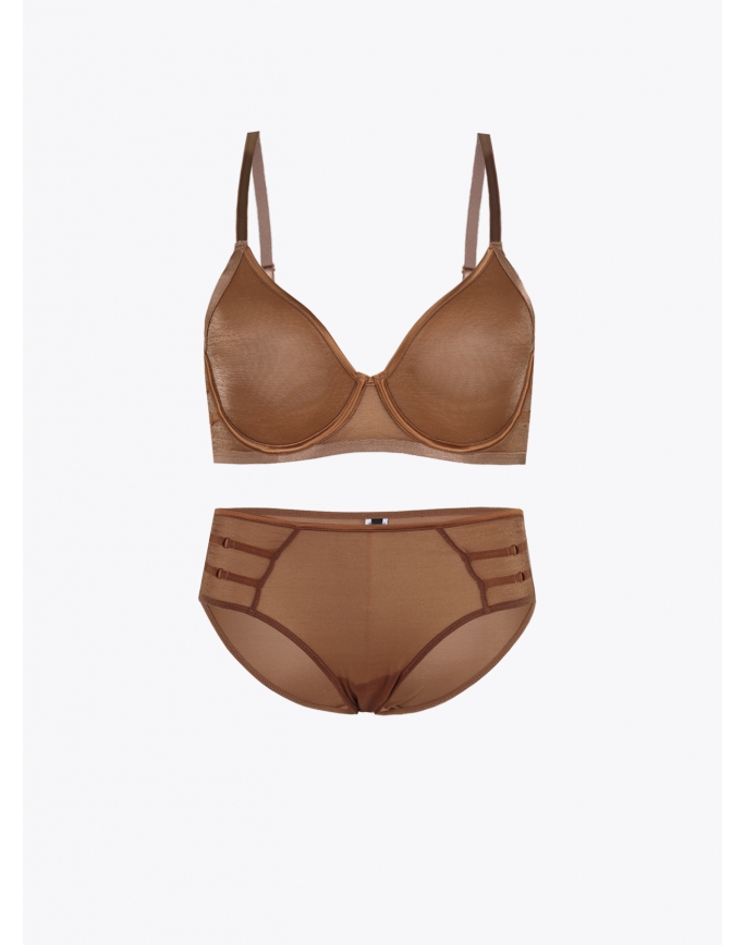 Комплект нижнего белья (Арт.318000-2132WXY) от торговой марки Индефини. В комплекте бюстгальтер и трусы-слипы. Бюстгальтер бежевого цвета, из полиамида, с косточками, лямки регулируются. Трусы-слипы бежевого цвета, из полиамида, на мягкой резинке, средней посадки.