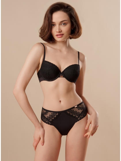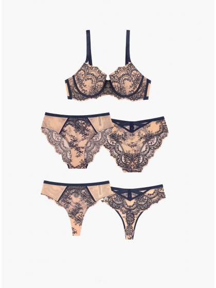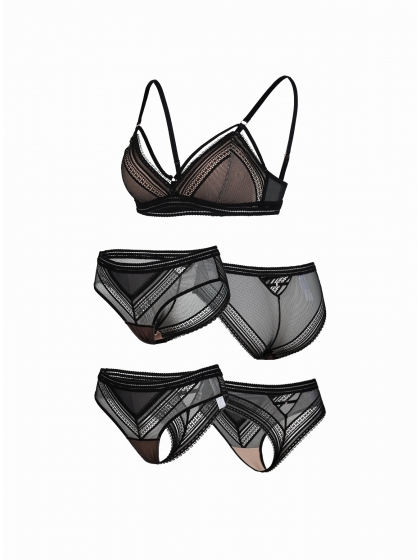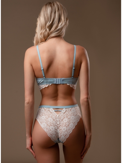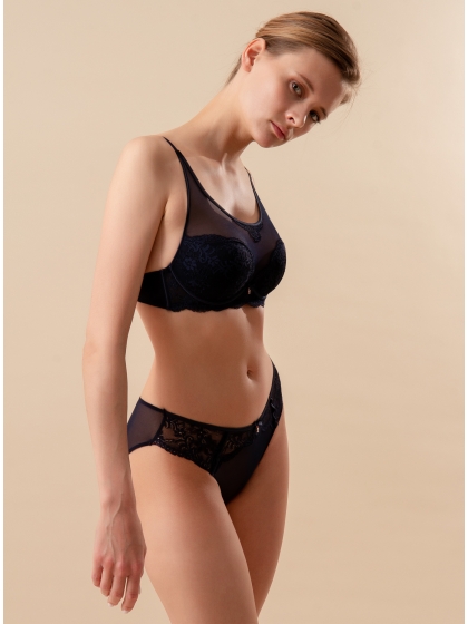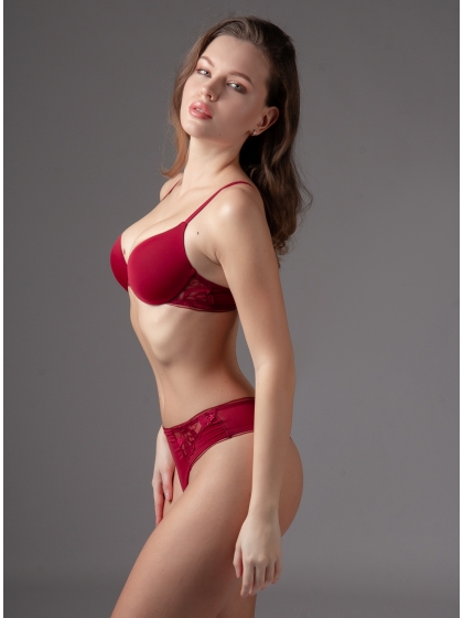 Комплект содержит бюстгальтер, трусы-слипы и трусы-стринги. Бюстгальтер выполнен без косточек, .....