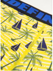 Мужские трусы от торговой марки Индефини. Трусы-боксеры из хлопка, желтого цвета, с пляжным принтом, в полоску, на мягкой резинке.