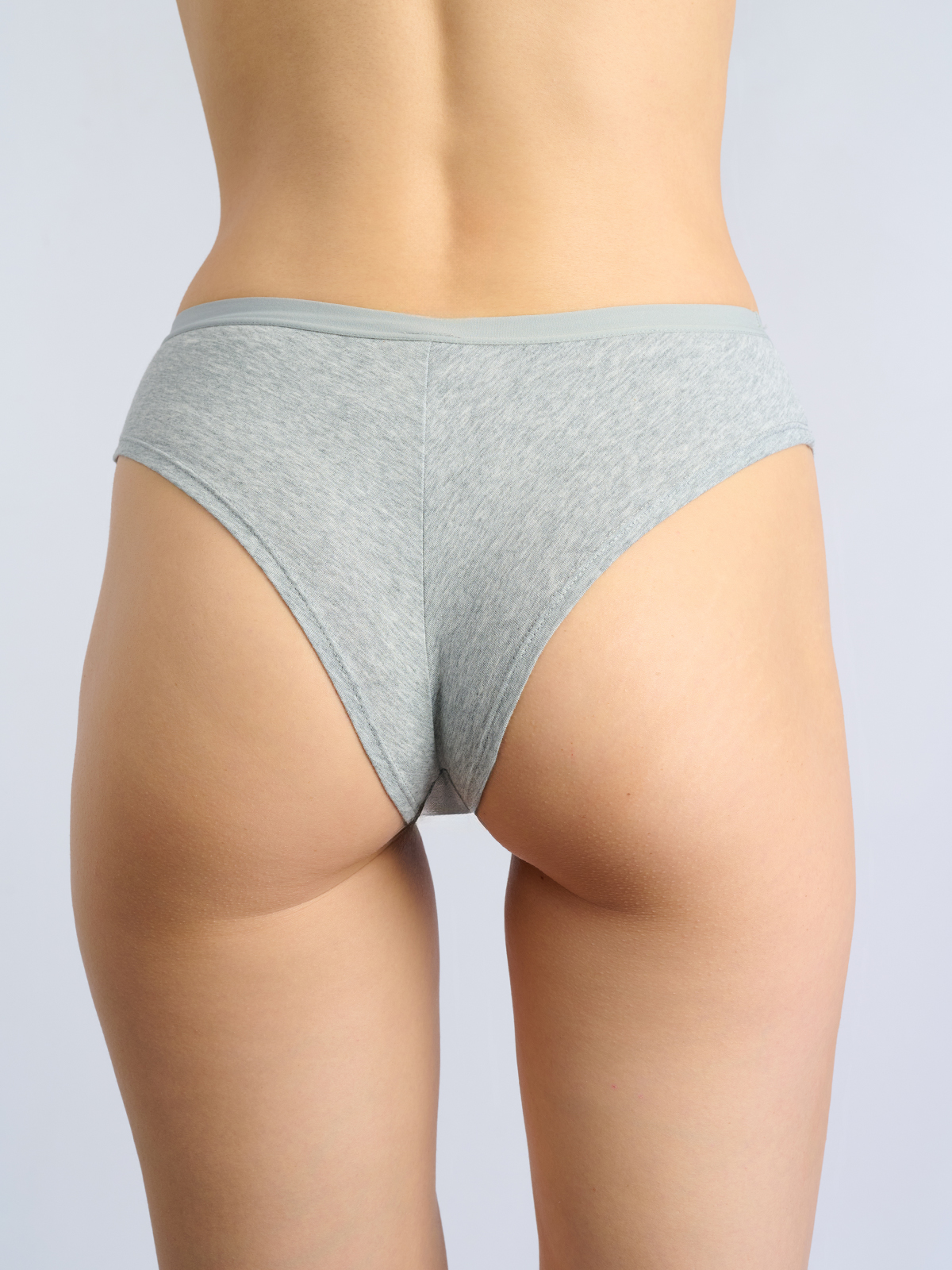 Трусы средней посадки держатся на талии мягкой резинкой — серой у серых трусов и белой у белых.