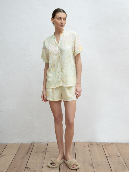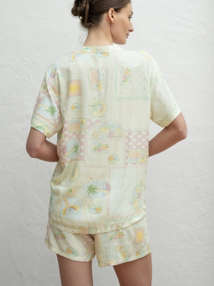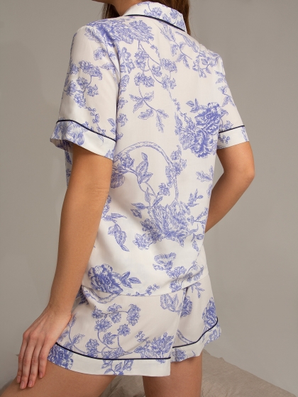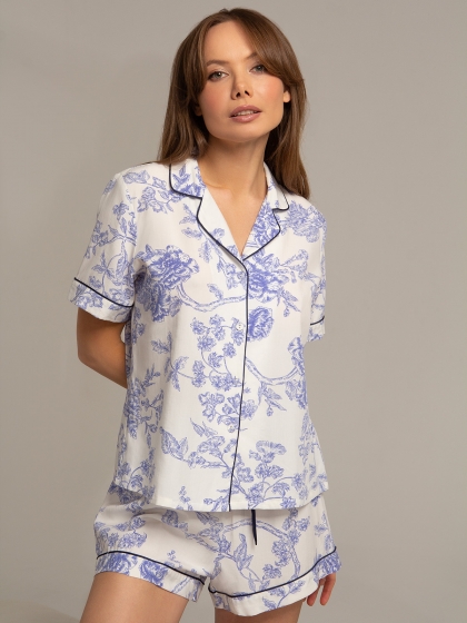 Пижама женская изготовлена из хлопковой ткани, выполнена в молочном цвете. Ткань пижамы выполнена с .....