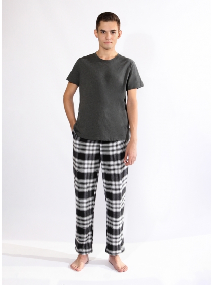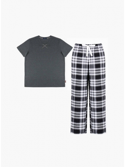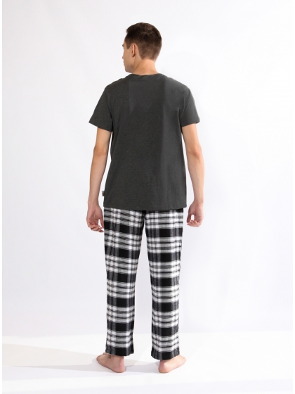 Пижама мужская 5020PBC-K бренда Indefini изготовлена из хлопка. Она состоит из футболки и брюк. .....
