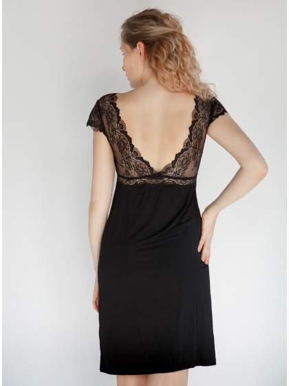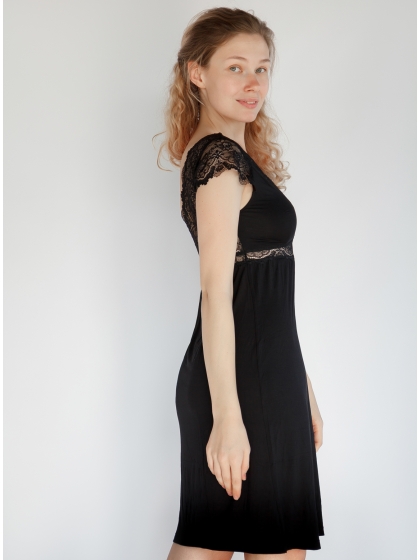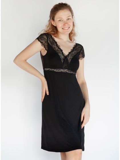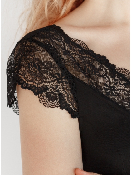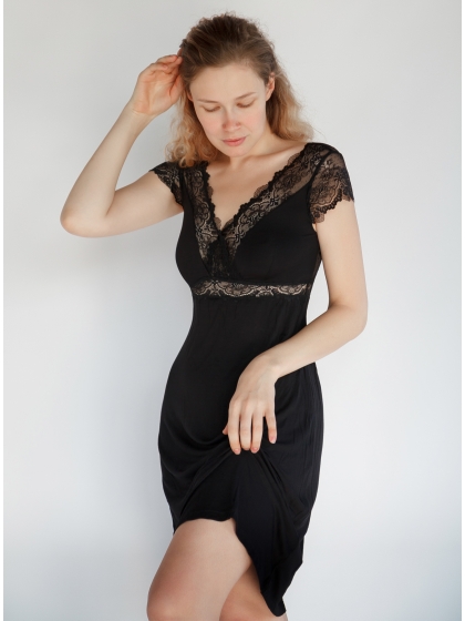 Сорочка изготовлена из модала, сочетает в себе мягкость и легкость. С короткими рукавами и кружевом .....