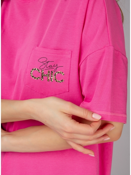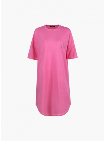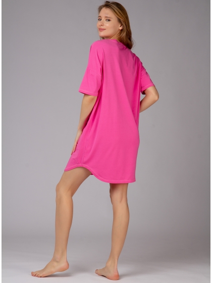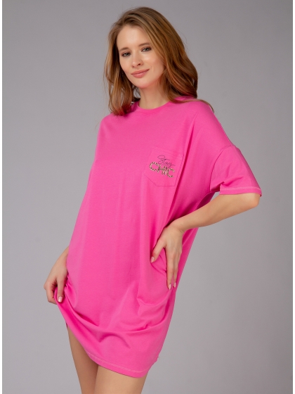 Сорочка женская, изготовленная из хлопкового трикотажа, выполнена в розовом цвете и с прямым свободн.....