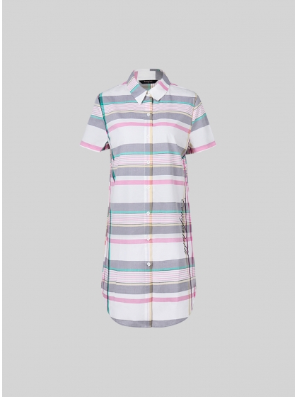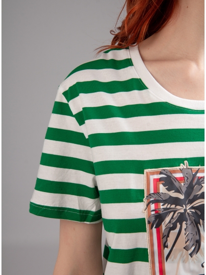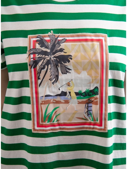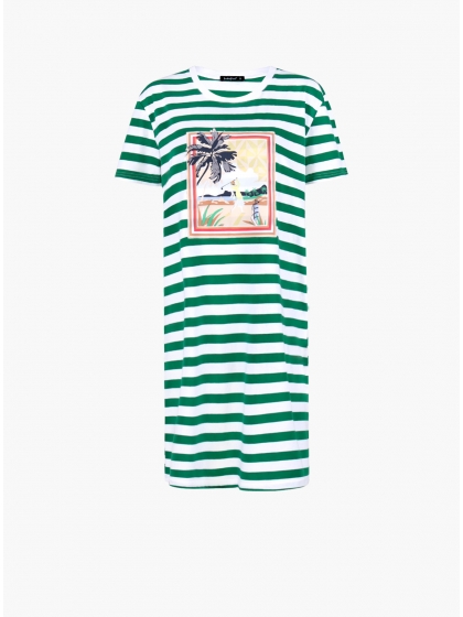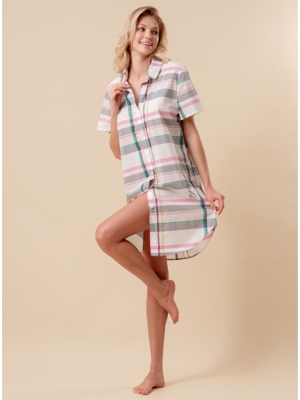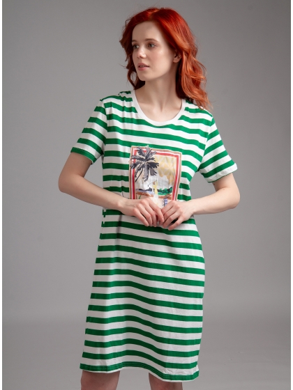 Женская сорочка от торговой марки Индефини. Сорочка из хлопка, в бело-зеленую полоску, с принтом.....