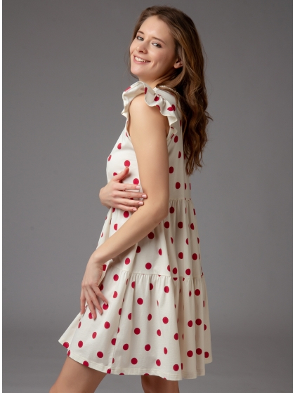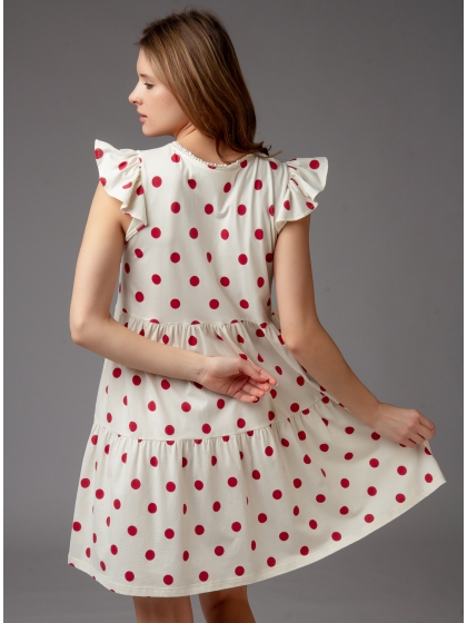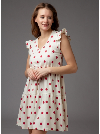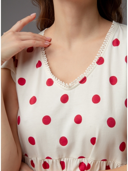 Женская сорочка от торговой марки Индефини. Сорочка из хлопка, белого цвета, с принтом в красный.....