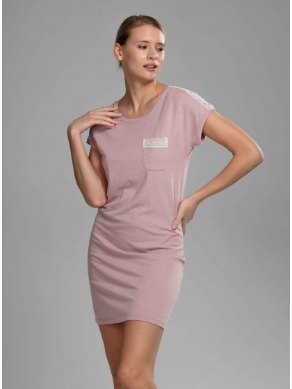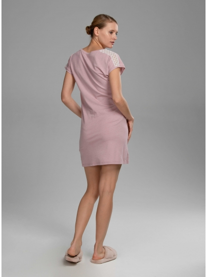 Женская сорочка от торговой марки Индефини. Сорочка из хлопка и модала, розового цвета, с короткими .....