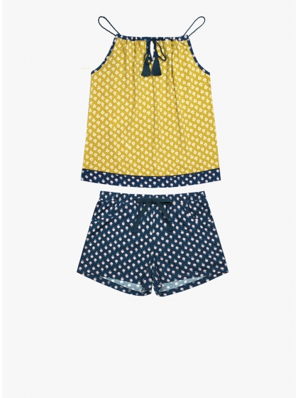 Пижама женская изготовлена из полиэстера с добавлением хлопка и вискозы. В комплекте майка с шортами.....
