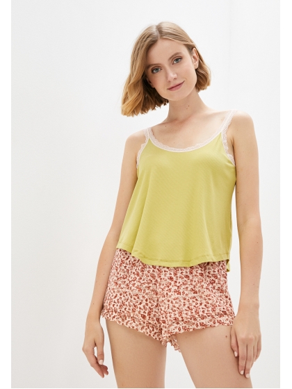 Домашняя пижама от торговой марки Индефини. В комплект входит майка-топ и шорты. Майка из вискозы, ч.....
