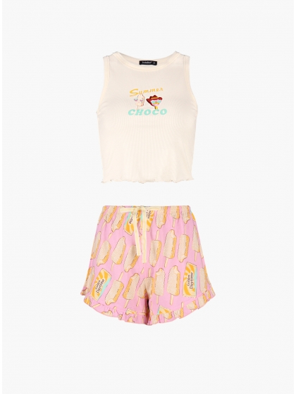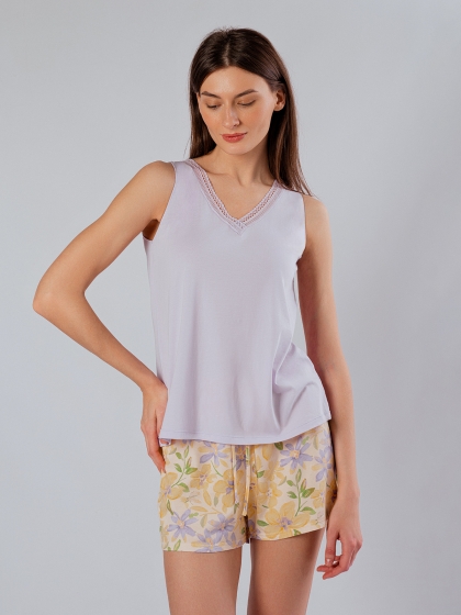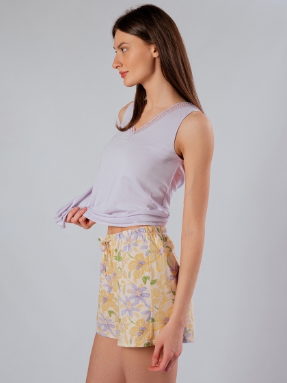 Комплект домашней одежды от торговой марки Индефини. В комплекте майка-топ и шорты. Майка-топ из хло.....