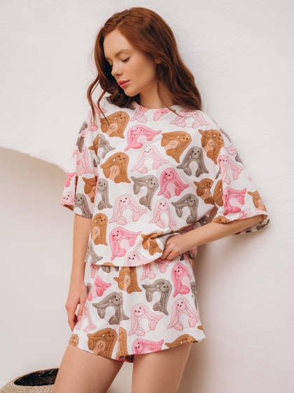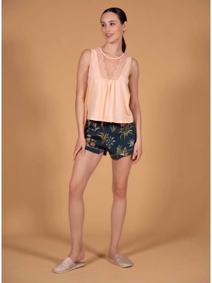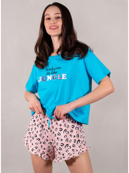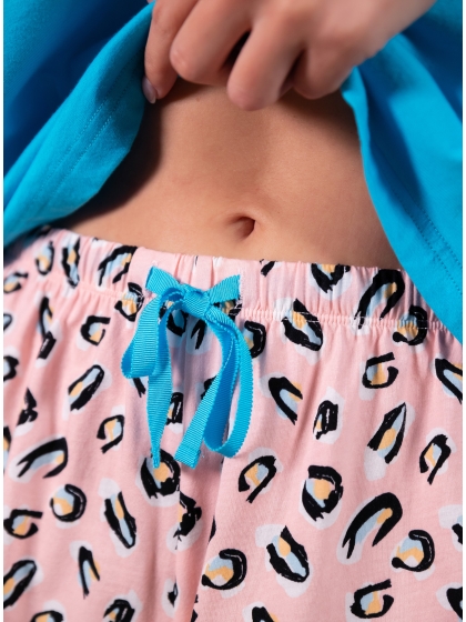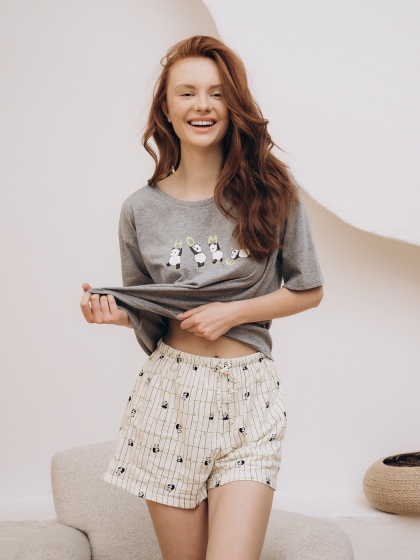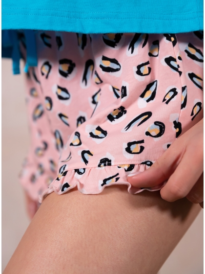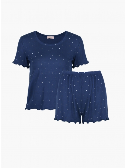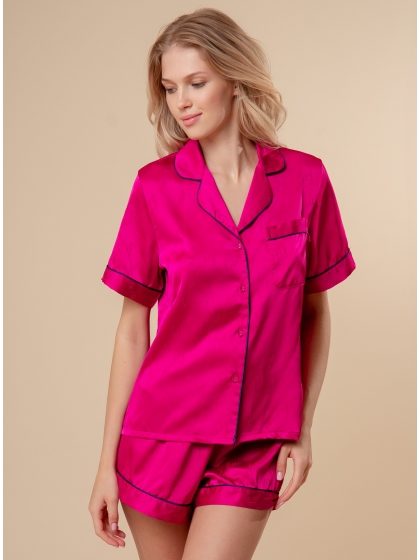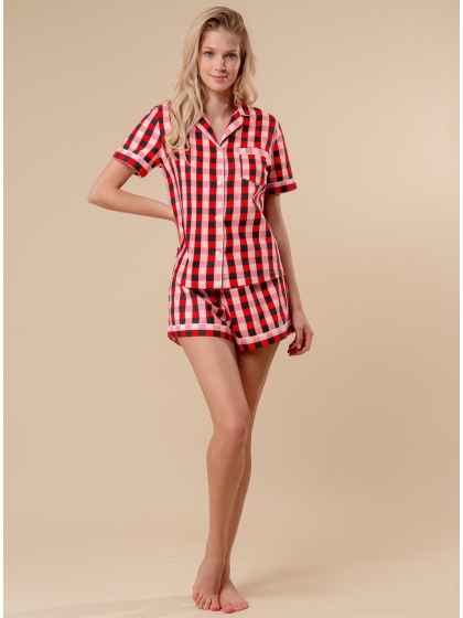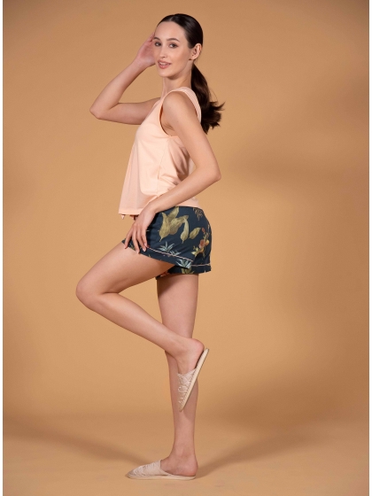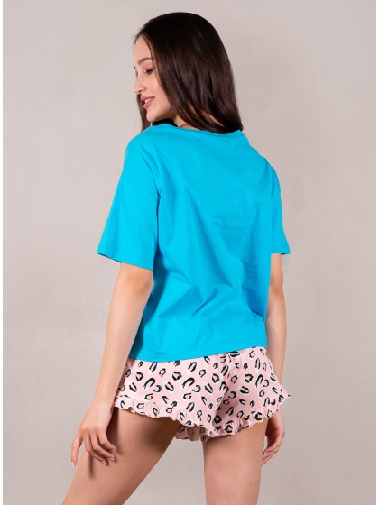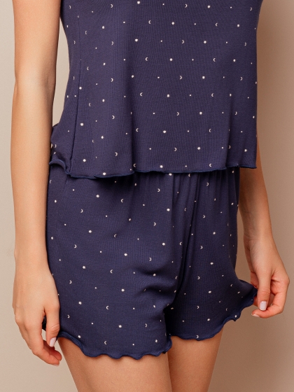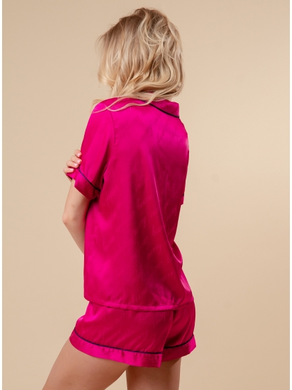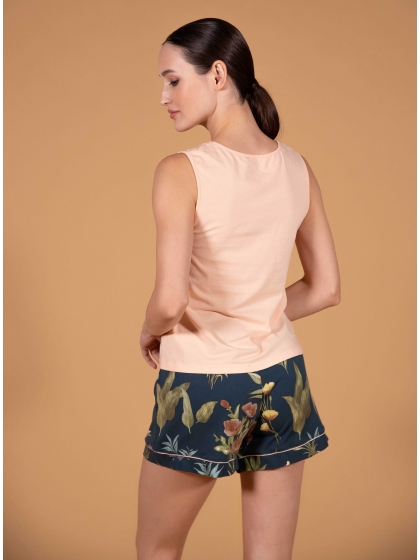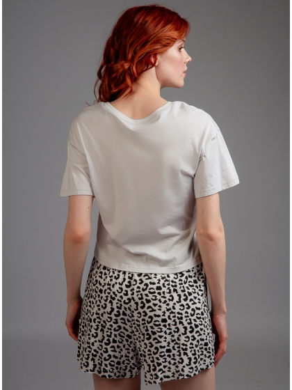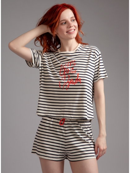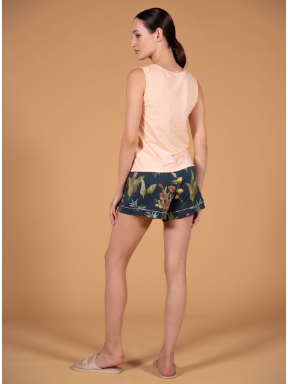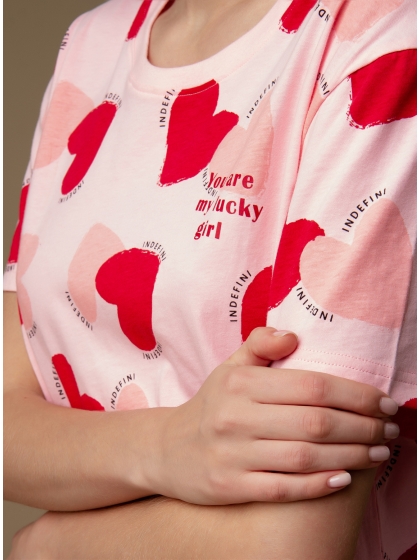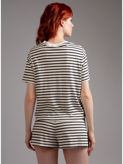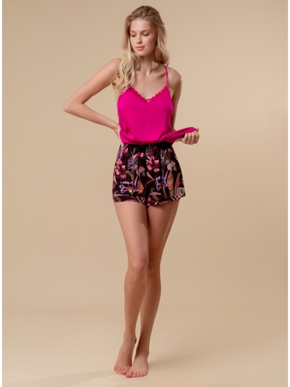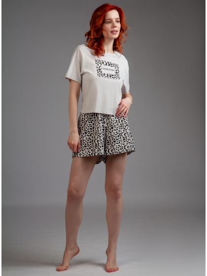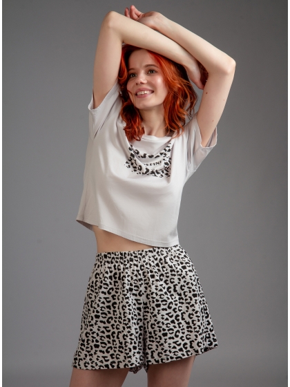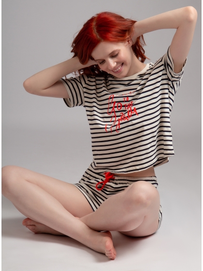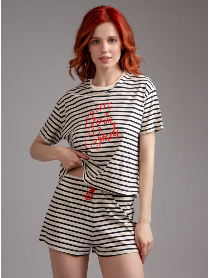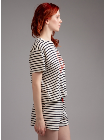 Пижама женская 5231TBD бренда Indefini изготовлена из 100% хлопка. Состоит из футболки и шорт. .....