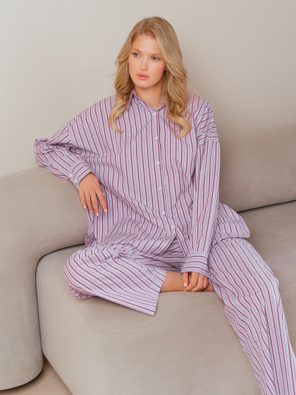 Легкая и стильная пижама Indefini — это идеальный спутник для уютного отдыха, расслабленных вечеров .....