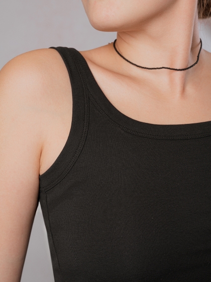 Цвет : Черный Состав : 92% хлопок 8% эластан Облегающий черный топ из мягкого хлопка с доб.....
