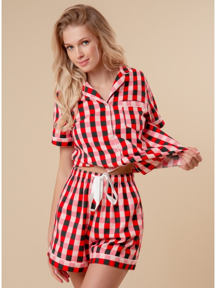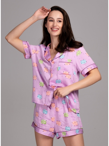 Домашняя пижама от торговой марки Индефини. В комплект входит рубашка и шорты. Рубашка из полиэстера.....