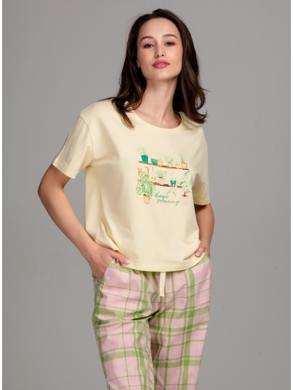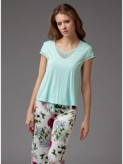 Домашняя пижама (Арт. 5192TCC) выполнена из 100% хлопка. В комплект входит рубашка и брюки в нежн.....