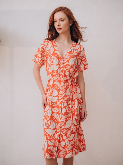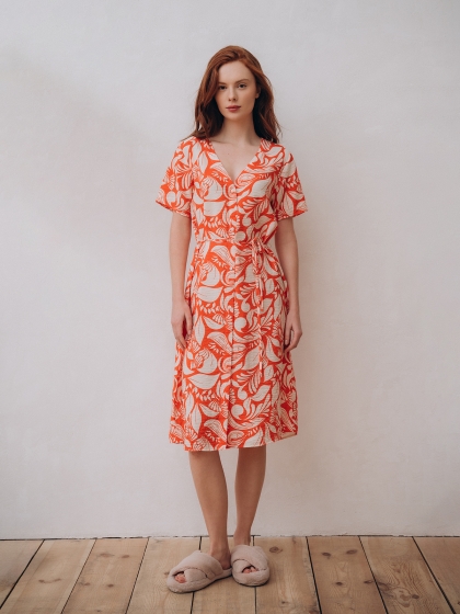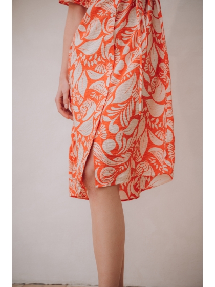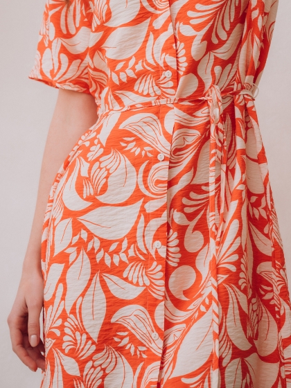 Пляжная туника изготовлена из смесовой ткани и выполнена в оранжевом цвете. Туника на пуговицах имее.....