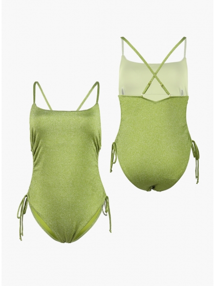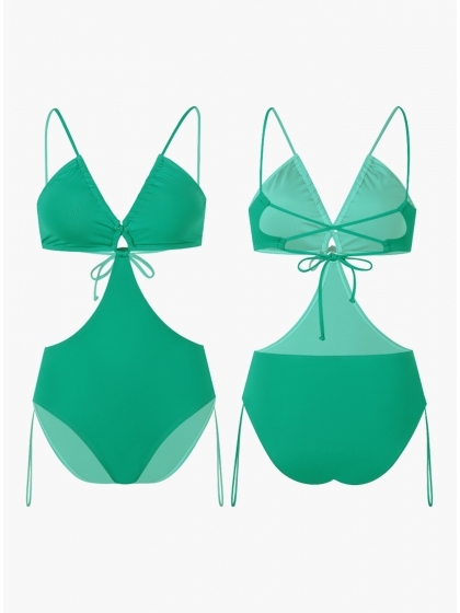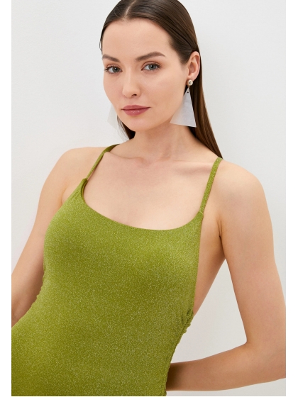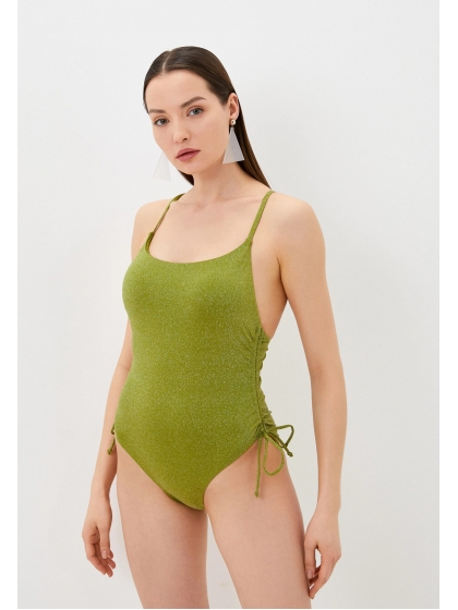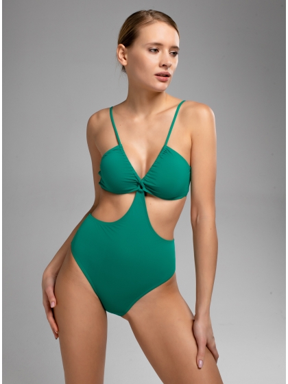 Слитный купальник, изготовленный из полиамида, выполнен в изумрудном цвете. Он плотно облегает фигур.....