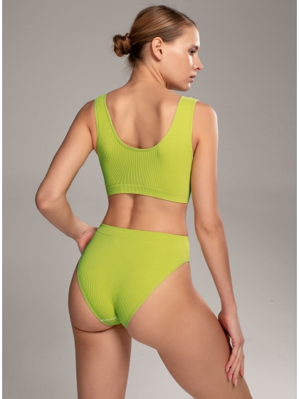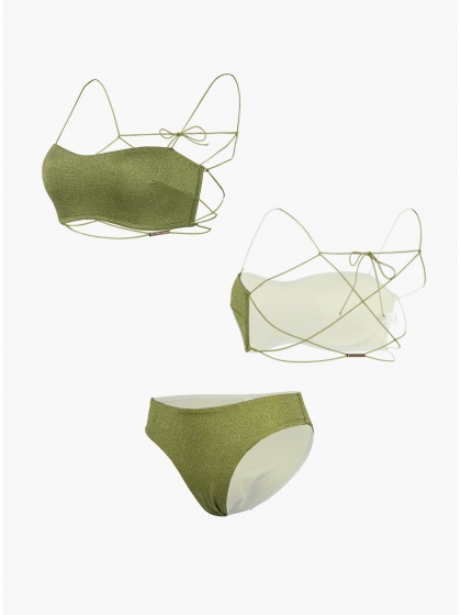 Раздельный купальник, изготовленный из полиамида, выполнен в цвете хаки с фактурой ткани в волнистый.....