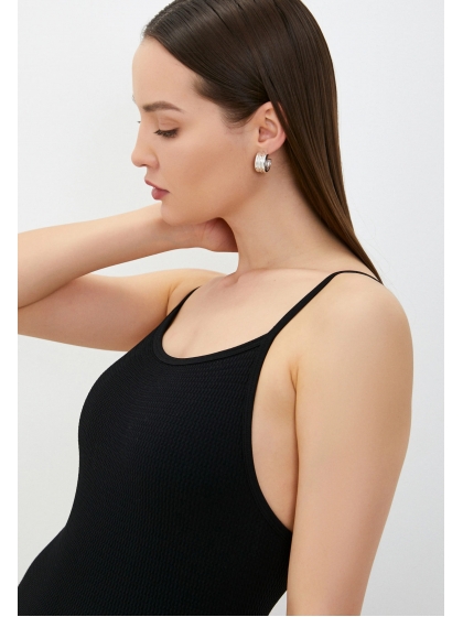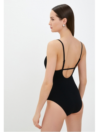 Слитный купальник, изготовленный из полиамида, выполнен в классическом черном цвете. Он плотно облег.....