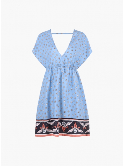 Пляжная туника изготовлена из вискозной ткани. Она имеет рукава три четверти. Застёгивается на пугов.....