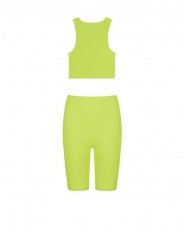 Женский спортивный комплект из полиамида мягкий на ощупь и приятный к телу. Данная модель обладает высокой эластичностью и не сковывает движения, она прекрасно подойдет для занятий фитнесом, йогой, танцами, гимнастикой, бегом и другими видами спорта. Изделие включает в себя топ и шорты. Топ будет отлично сидеть по фигуре благодаря плотной резинке снизу и при этом комфортно ощущаться при ношении. Женские шорты оснащены ластовицей. Эта модель отлично облегает тело, подчеркивая его контур и создавая ощущение «второй кожи».