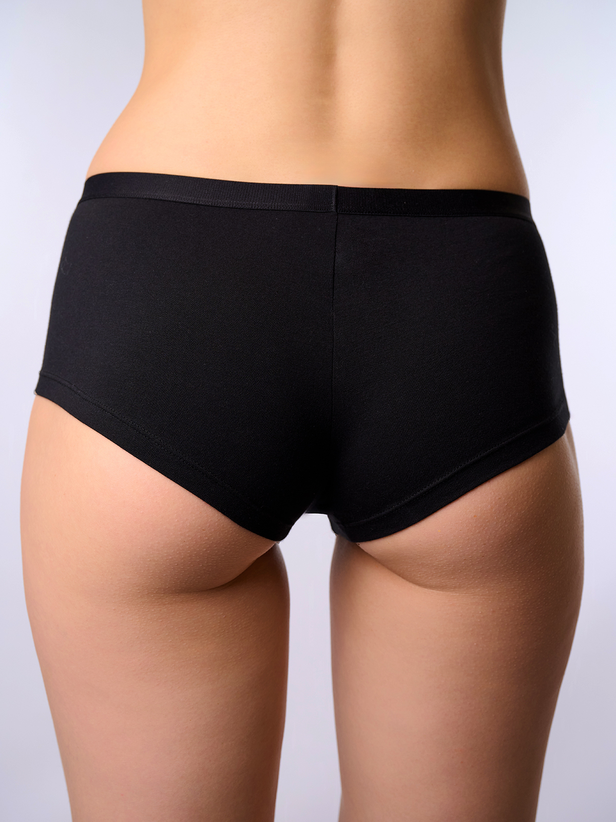 Женские трусы-шорты из мягкого хлопкового трикотажа обеспечивают комфорт и плотное, но нежное прилегание. Эластичный широкий пояс фиксирует посадку, не сдавливая и не оставляя следов на коже. Удлиненный крой полностью закрывает бедра, что идеально для спорта и активного дня.