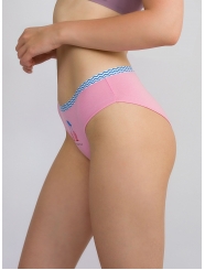 Женские трусы от торговой марки Индефини. Трусы-слипы из хлопка, розового цвета, с принтом и надписью, на мягкой резинке, средней посадки.