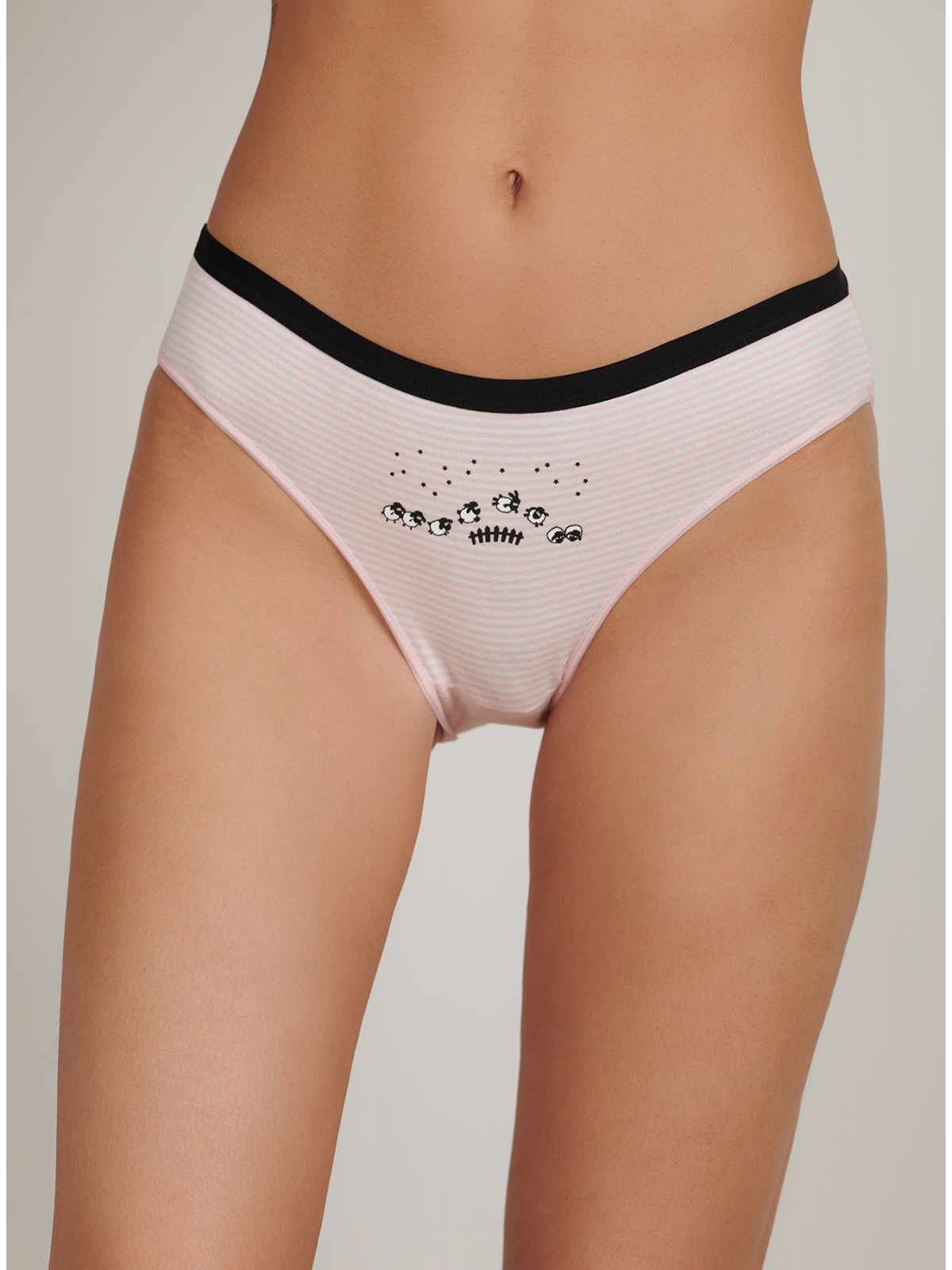 Женские трусы от торговой марки Индефини. Трусы-слипы из хлопка, розового цвета, с принтом, в полоску спереди, на мягкой резинке, средней посадки.