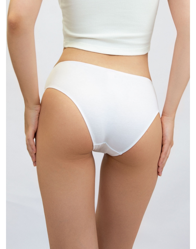 Женские трусы от торговой марки Индефини. Трусы-слипы из хлопка, белого цвета, с кружевными вставками и обрамлением, на мягкой резинке, средней посадки.
