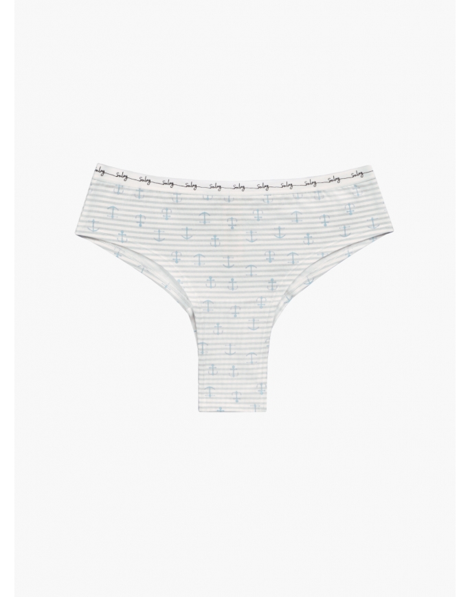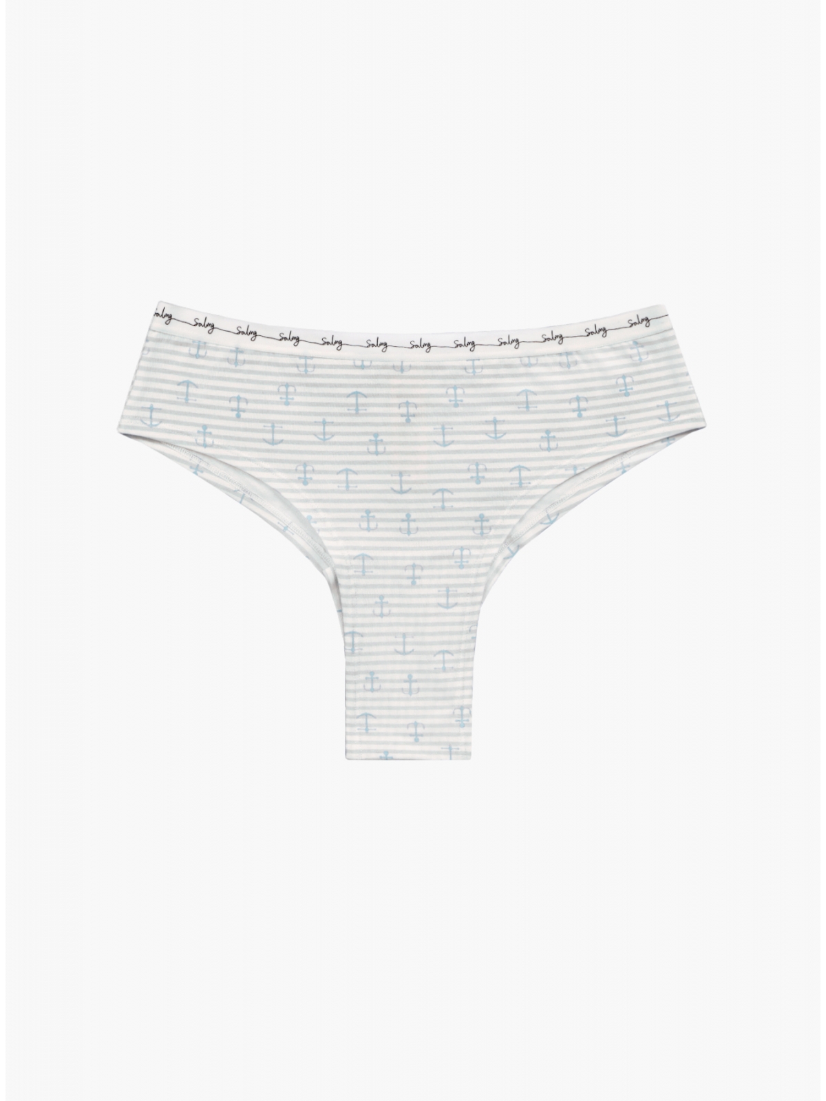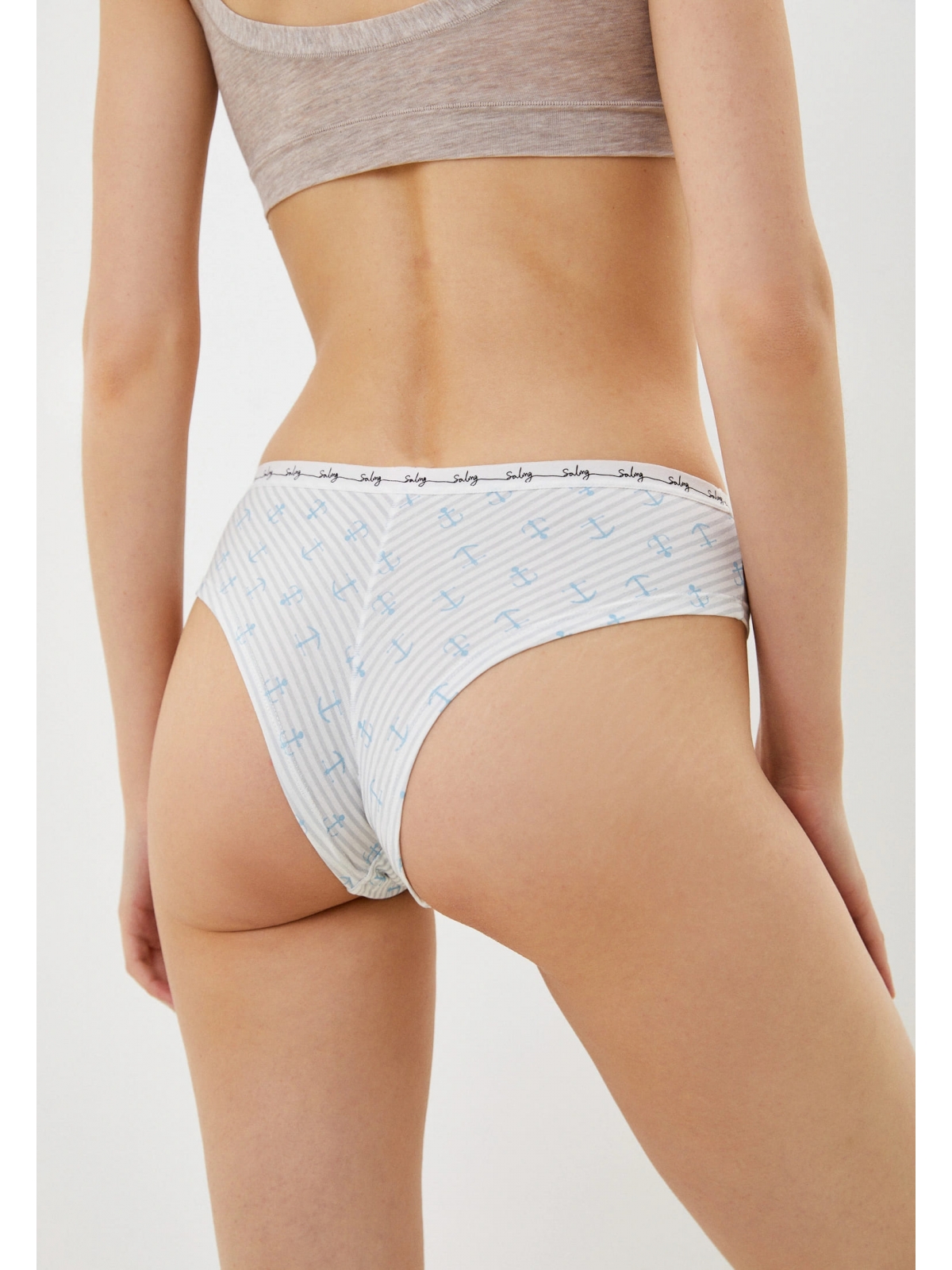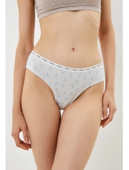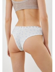 Женские трусы от торговой марки Индефини. Трусы-танга из бамбука и хлопка, серого цвета, с принтом, в полоску, на мягкой резинке, средней посадки.