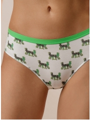 Женские трусы-слипы (Арт.3236LUB) от торговой марки Индефини. Трусы-слипы белого цвета, с принтом, из хлопка, на мягкой резинке зеленого цвета. Хлопковый материал обеспечит надежную посадку на тело и хорошую воздухопроницаемость для кожи, а красивое сочетание белого цвета с черно-зелёным принтом на нём прекрасно дополняют внешний вид трусов.