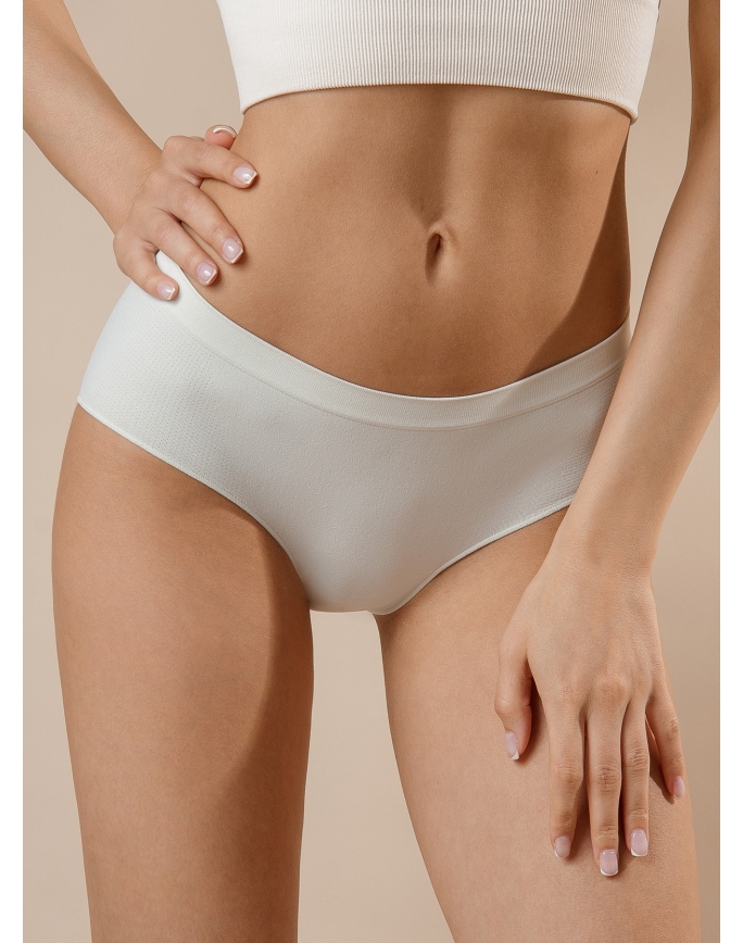 Женские трусы от торговой марки Индефини. Трусы-слипы фисташкового цвета с высокой посадкой, изготовлены из мягкой микрофибры в тонкий рубчик без боковых швов, дополнены гигиенической хлопковой ластовицей, вырезы для ног обработаны плоским швом вподгибку с резинкой, широкий пояс на резинке плотно фиксирует на теле.