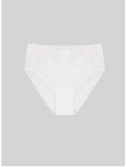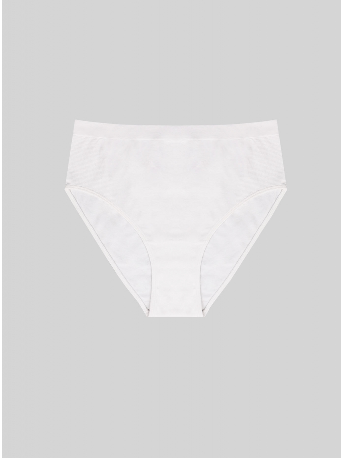 Женские трусы от торговой марки Индефини. Трусы-слипы белого цвета с высокой посадкой, изготовлены из мягкой микрофибры в тонкий рубчик без боковых швов, дополнены гигиенической хлопковой ластовицей, вырезы для ног обработаны плоским швом вподгибку с резинкой, широкий пояс на резинке плотно фиксирует на теле.