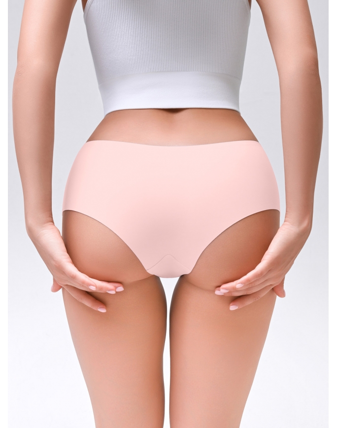 Трусы слипы женские изготовлены из смесовой ткани и выполнены в розовом цвете. Бесшовные трусы средней посадки фиксируются во время носки мягкой резинкой на талии. Они подчеркивают контур фигуры, создавая соблазнительный силуэт.