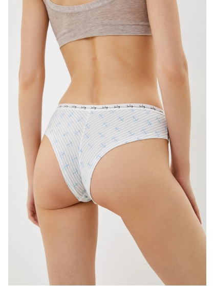 Женские трусы от торговой марки Индефини. Трусы-танга из бамбука и хлопка, серого цвета, с принтом, .....