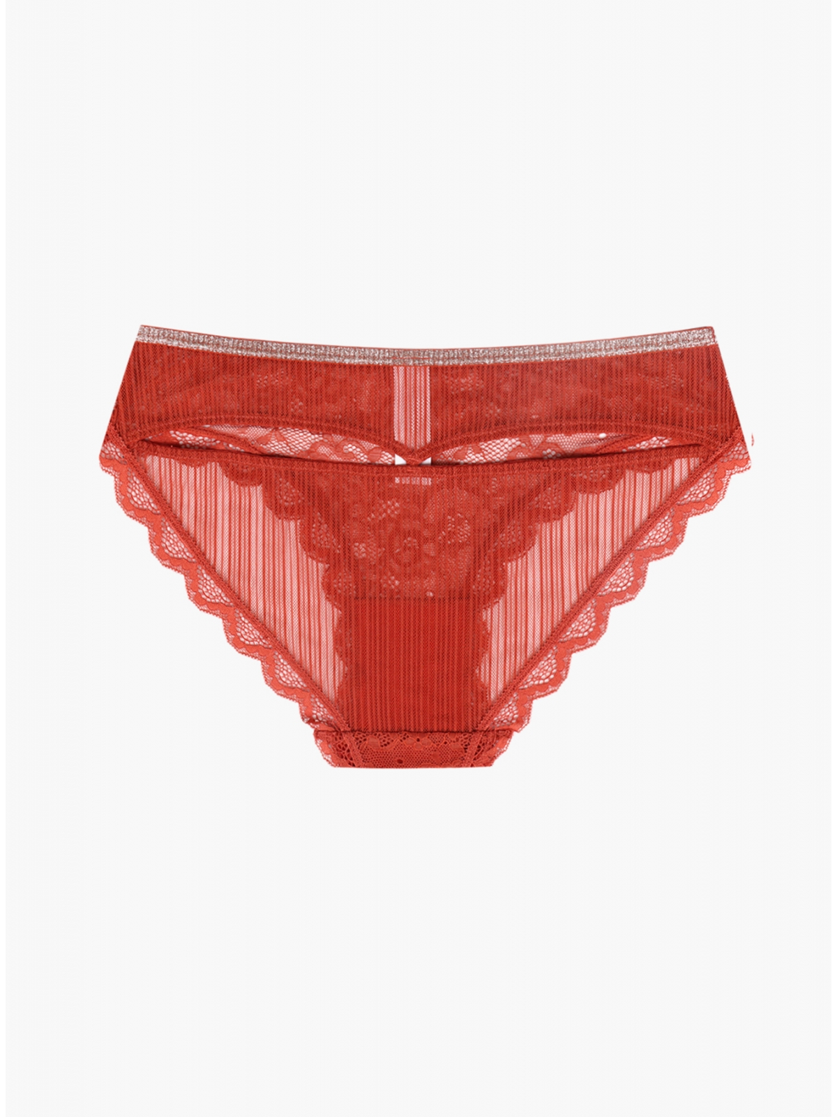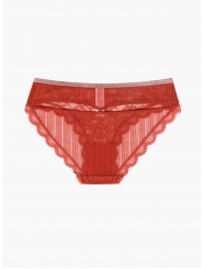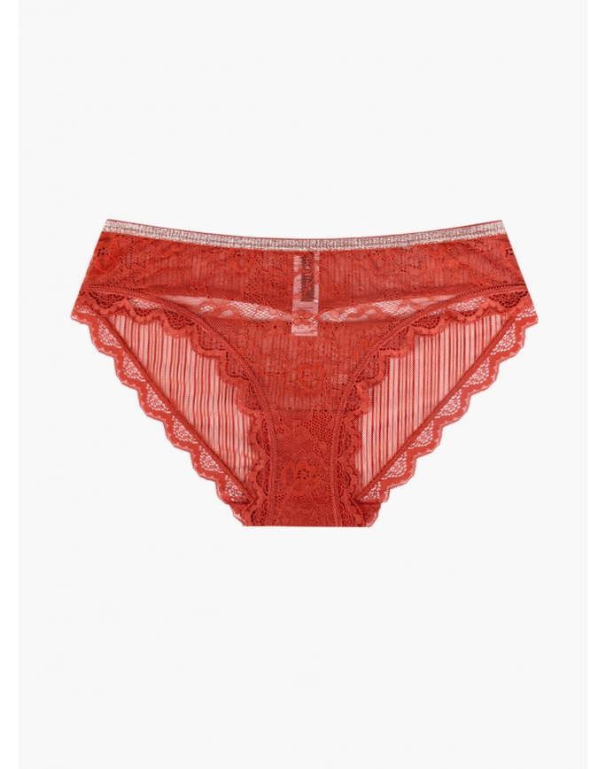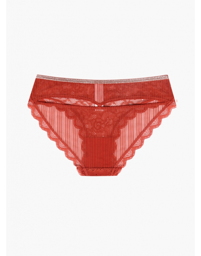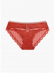Женские трусы от торговой марки Индефини. Трусы-слипы из полиамида, красного цвета, из кружевной ткани, с обрамлением, с декоративными вырезами сзади, на мягкой резинке, средней посадки.
