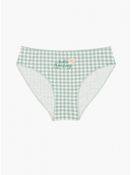 Трусы слипы женские изготовлены из хлопка и выполнены в зеленом цвете. Трусы имеют среднюю посад.....