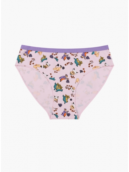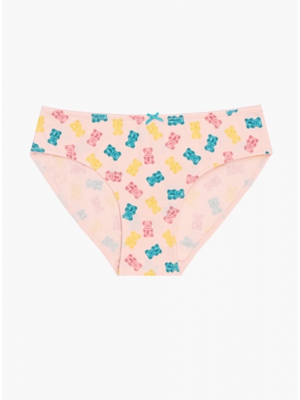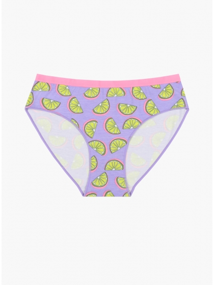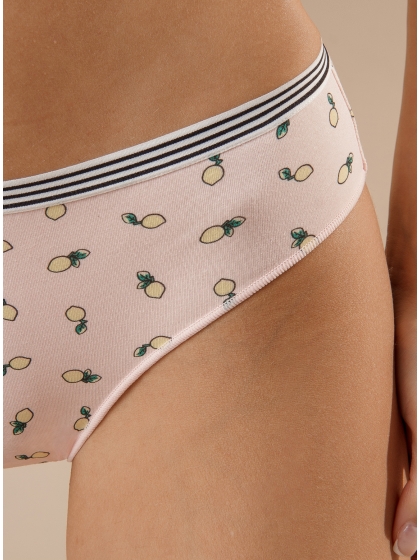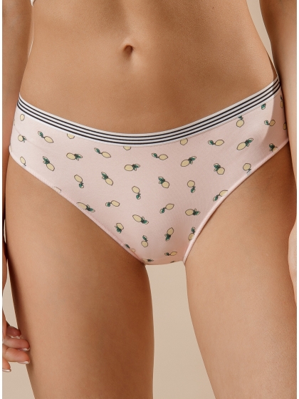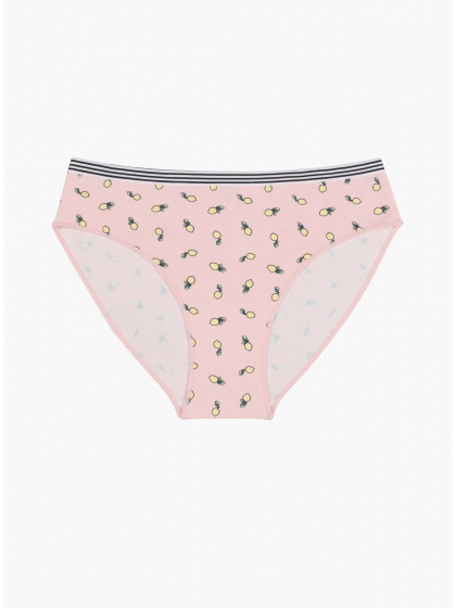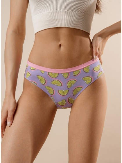 Трусы слипы женские изготовлены из хлопка. Они выполнены в розовом цвете с нанесенным фруктовым прин.....