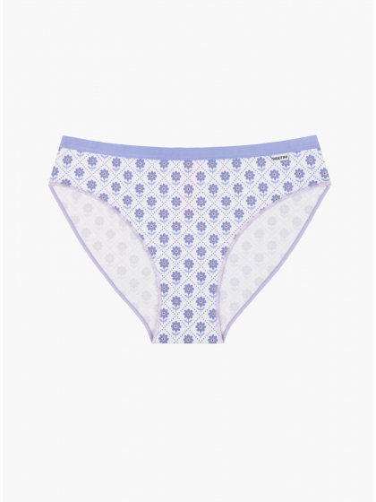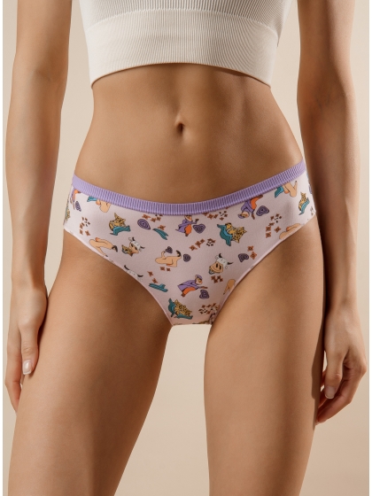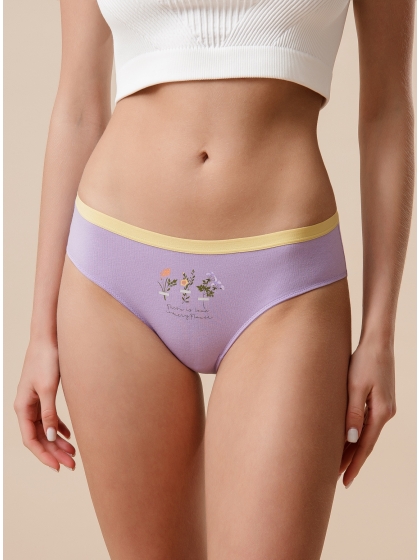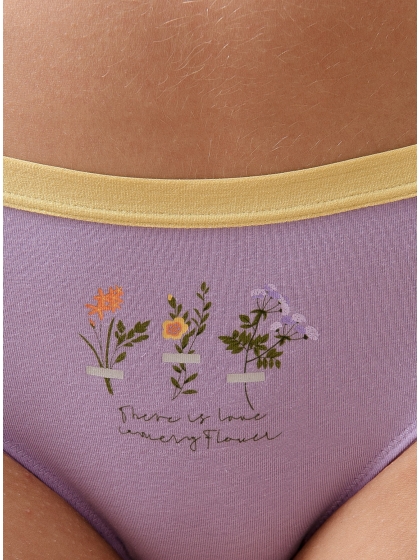 Трусы слипы женские изготовлены из хлопка. Они выполнены в фиолетовом цвете с нанесенным цветочным п.....