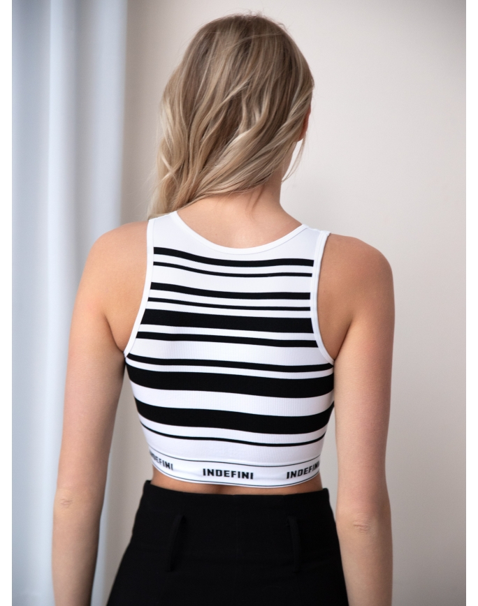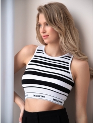 Женский топ в рубчик из полиамида и полиэстера очень мягкий на ощупь и приятный к телу. Благодаря высокой эластичности топ не сковывает движения. Он прекрасно подойдет для занятий фитнесом, йогой, танцами, гимнастикой, бегом и другими видами спорта. Данная модель будет отлично сидеть по фигуре благодаря плотной резинке снизу и при этом комфортно ощущаться на коже.